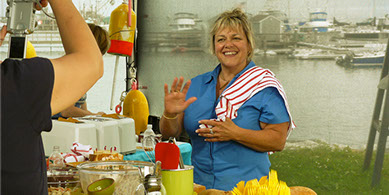 Lynn is “on the line” cooking five days a week. In addition she makes her special white bread and all of the desserts, manages the business, places the orders to ensure sourcing and caters events. Hard work is at her core. She comes from a long line of hard workers, people who hauled traps, chopped wood, carried water, baked from scratch, fed everyone who came to the table and kept the family running with sheer determination. Hard work requires play time as an offset; she swims daily and loves to take scenic rides on her motorcycle.